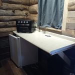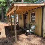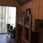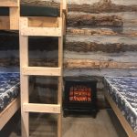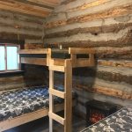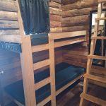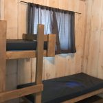 Most of our cabins are simple structures with 4 bunks (sleeps up to 8). Power outlets allow you plug in small appliances. A picnic table outside is available for cooking with a small BBQ or camping stove. Many guests bring dining tents and set up an outdoor space for eating and visiting.