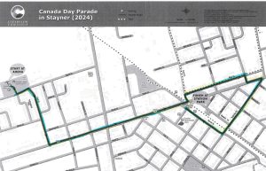- Monday, July 1 we will meet out front to gather together and line up for the parade at 9 am at the Stayner Arena. The parade starts at 10:30 and will travel from the arena to Station Park.